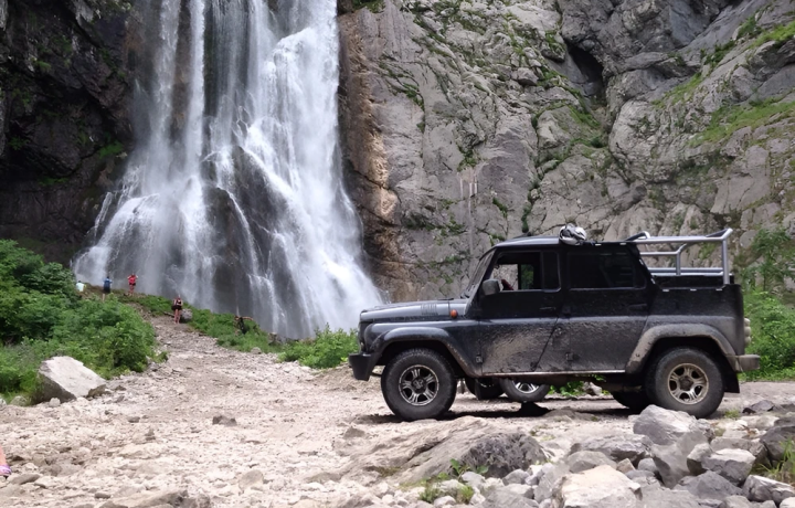 11:30 — подъём на внедорожнике к Гегскому водопаду