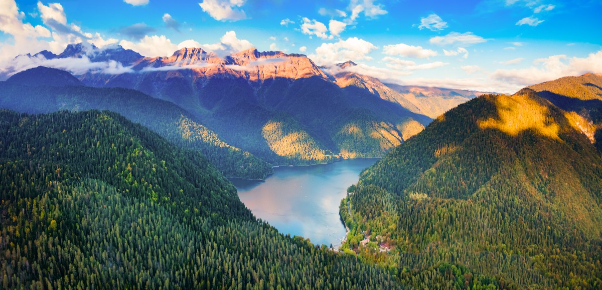 13:30–15:30 — озеро Рица (прогулка, обед, катамараны)