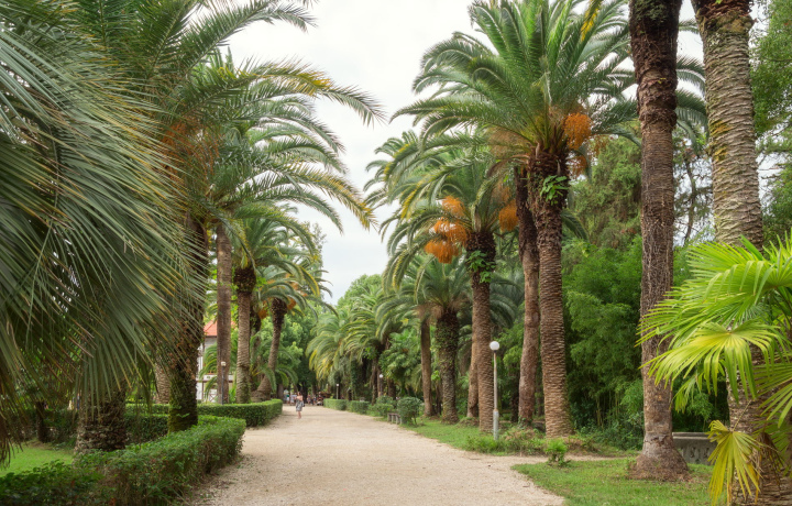 Приморский парк. Внутри есть фонтаны, статуи, водоемы с золотыми рыбками и обилие заморских растений. Живописная прогулка в компании кедров, платанов, кипарисов, эвкалиптов, сосен, пальм, магнолий, мальвы и бамбуковых зарослей, вам обеспечена!
