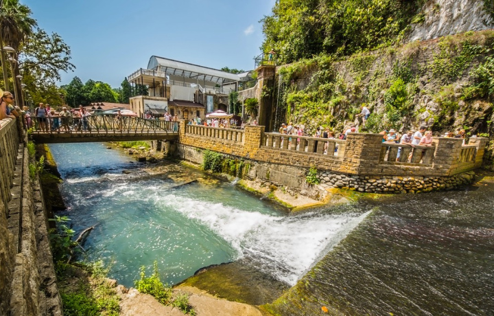 На платформе станции Псырцха больше не останавливаются поезда, но она из года в год привлекает множество туристов. Все потому, что здесь на берегу водохранилища притаился небольшой ажурный вокзал. Вы исследуете павильон, будто сошедший с иллюстрации к сказке, и сделаете антуражные фотографии. А после я провожу вас к искусственному водопаду, построенному монахами. Кроме того, при желании, мы посетим Новоафонскую карстовую пещеру, где находится подземное озеро Анатолия, окаменевший водопад и галерея каменных цветов.