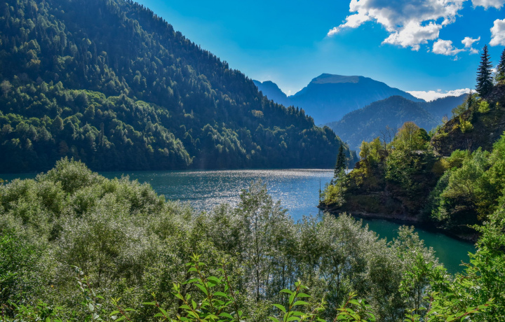 озеро Рица - незабываемая сказка Абхазии, как и весь маршрут: водопады, реки, ущелья, горный мед... поездка надолго останется в моей памяти и памяти моих детей! спасибо
