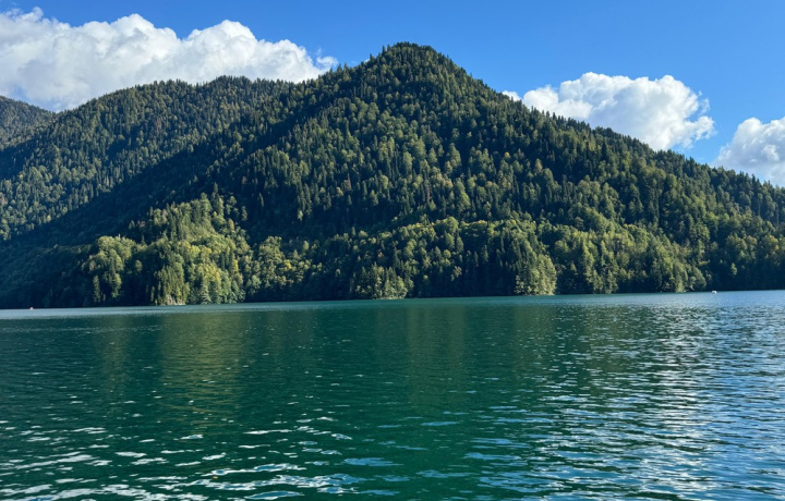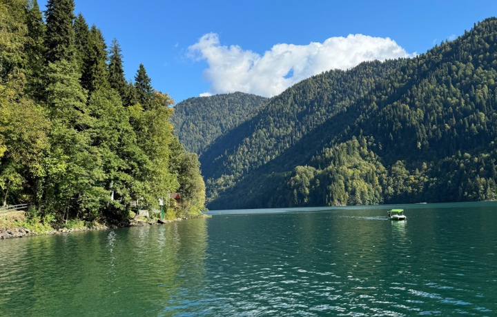 Ещё немного — и вы у природной жемчужины Абхазии, озера в окружении остроконечных гор с белоснежными вершинами. У вас будет достаточно времени, чтобы насладиться красотами Рицинского национального парка, отдохнуть на берегу и сделать фотографии места, название которого уже давно стало нарицательным.