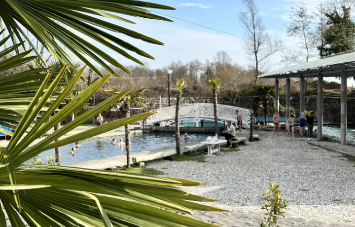 Термальный источник Кындыг. Большие открытые бассейны с горячей минеральной водой, массажные струи, природные грязевые ванны — идеальное завершение активного дня.