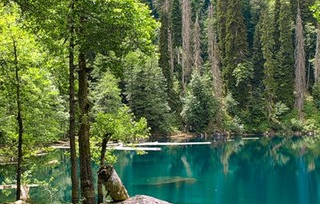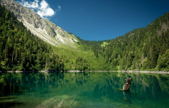 Мы поднимемся по глубокому скальному каньону в горы, к легендарному озеру Рица, где вы сможете прокатиться на белоснежных катамаранах. А после этого устремимся в гору по небольшому серпантину, где начинается пешая тропинка к озеру Малая Рица, которую мы преодолеем минут за 40. Эта точка нашего маршрута станет кульминацией всей программы — вы увидите поросшие пихтовым лесом склоны гор и огромный обрыв горы Пшегишхва, которая бережно обнимает у своего подножия дивное, будто затерянное в далеком прошлом, озеро. Благодаря отражениям в воде этот пейзаж создаёт фантастическую картину! Этот удивительный водоем питается исключительно атмосферными осадками — ни одна постоянная река не втекает и не вытекает из него. По гладкому зеркалу воды скользят водомерки, устраивают многоголосные концерты лягушки, а главный житель озера — тритон гребенчатый — занесен в международную Красную книгу!