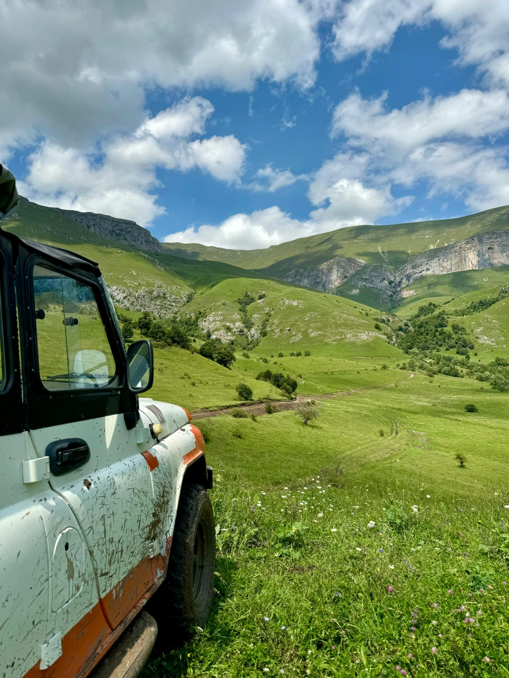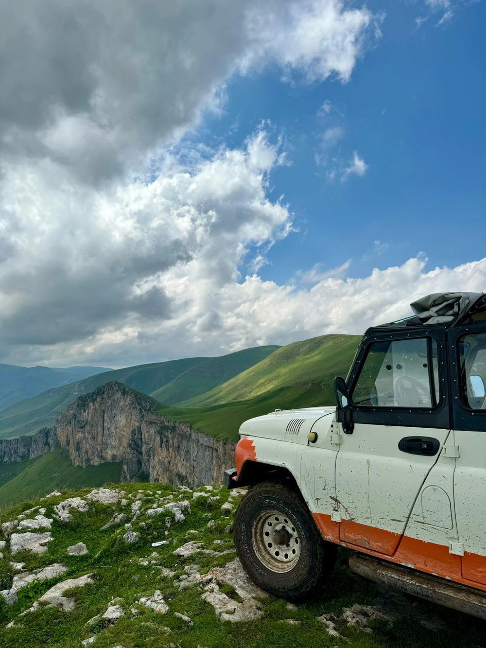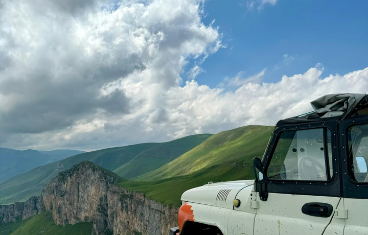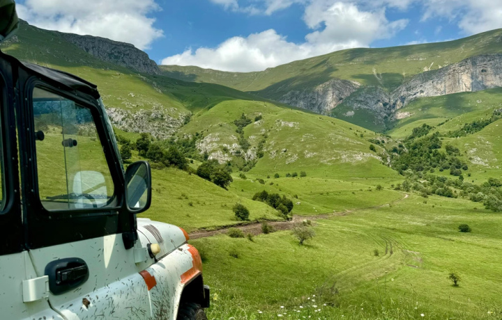 Мы поедем на гору на подготовленных внедорожниках. По пути сделаем остановки, чтобы насладиться яркими пейзажами и поговорить о дикой природе этих мест. Вас ждут недоступные локации, интересные факты о традициях, а также угощение на вершине горы Димац.