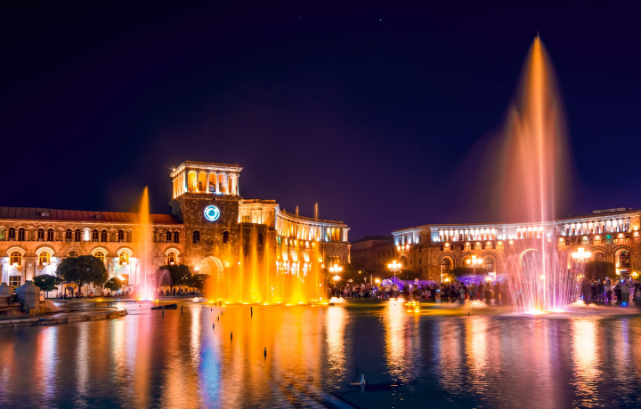 Площадь Республики — сердце Еревана, которое удивительно соединяет национальный дух и атмосферу современного города. Замысловатая форма площади соединяет овал и трапецию. По периметру возвышаются известные достопримечательности и административные здания. Туристам будет интересен Национальный исторический музей Армении. Напротив — поющие фонтаны, устраивающие шоу из воды и света каждый день.