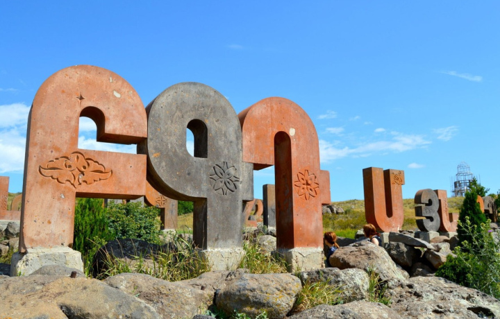 Это не просто памятник — это каменное стихотворение. Каждая буква вырезана в туфе и установлена у подножия горы. Вы сделаете фото рядом с первой буквой своего имени на память.