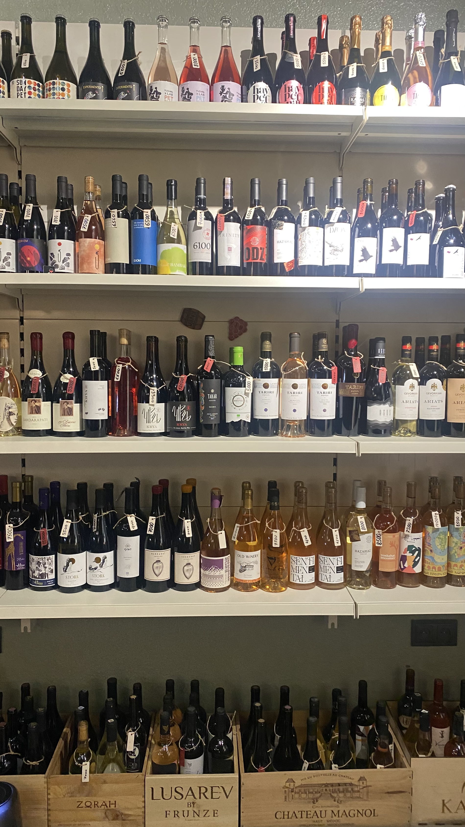 Сомелье подберёт напитки из нескольких винодельческих регионов, сделанных из различных сортов винограда и по разным технологиям: белое сухое, розовое сухое, красное классическое Арени, красное классическое из других сортов винограда или купаж сортов, красное сухое выдержанное.