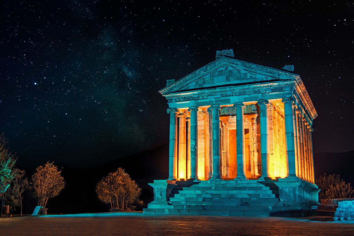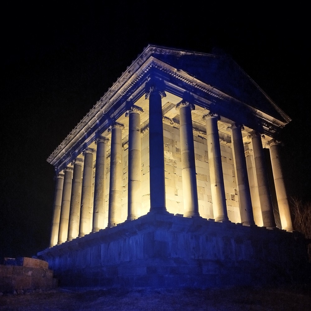 Гарни — единственный сохранившийся в Армении языческий храм 1 века нашей эры. Когда вокруг темно и включается подсветка, открывается великолепный вид на храм.