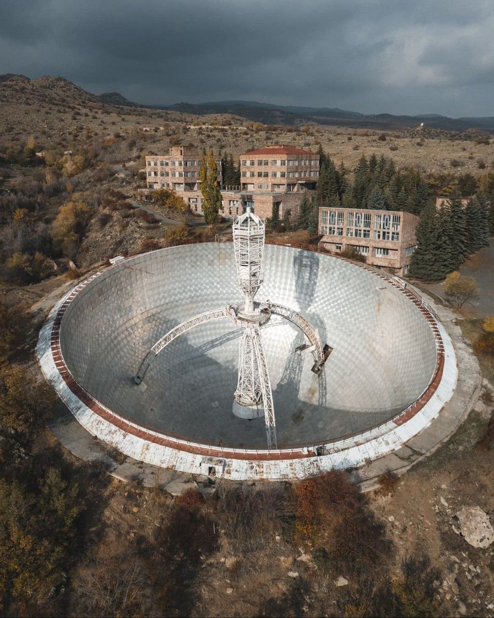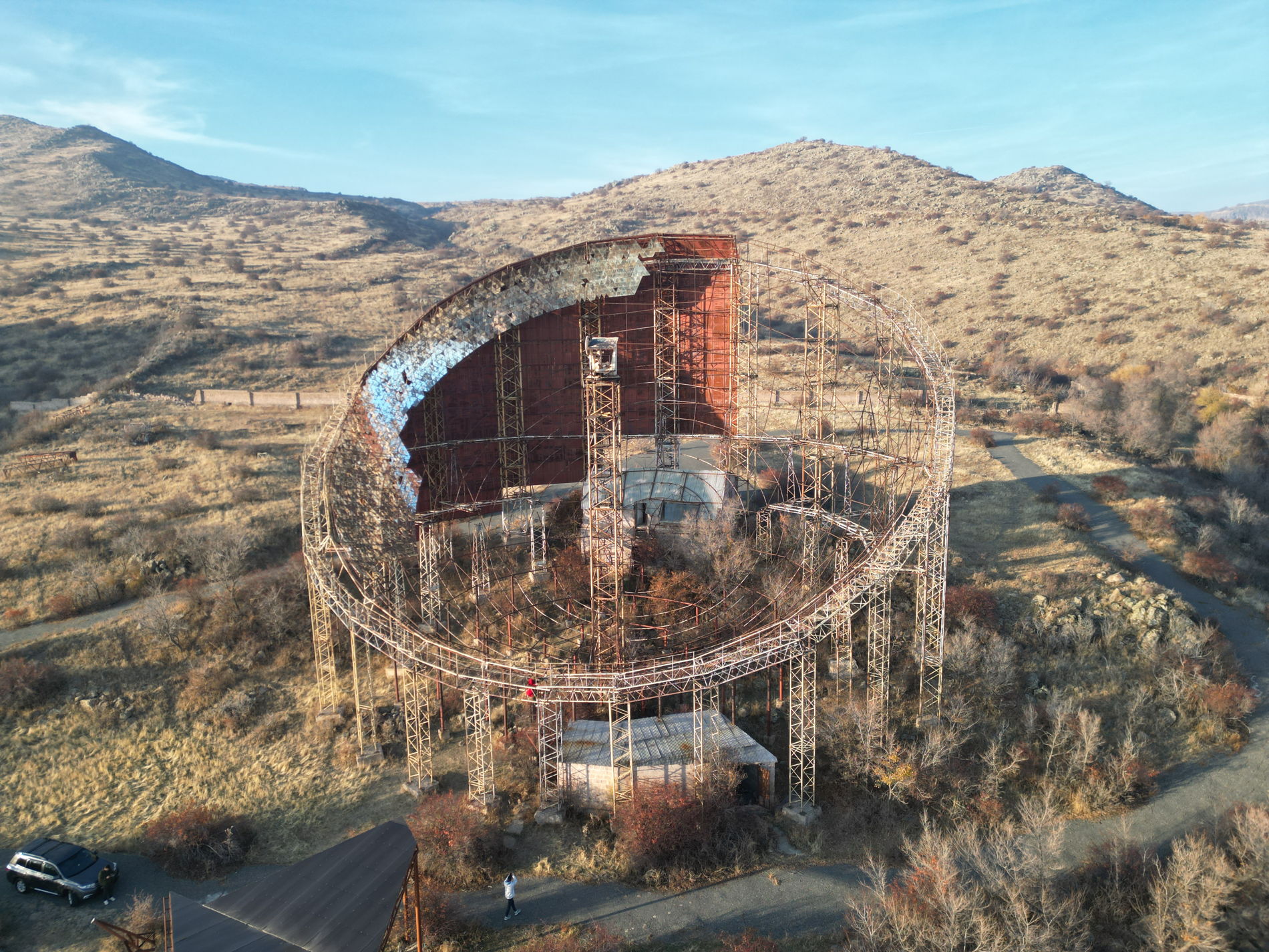 Мы зайдём в операторскую, откуда управляли гигантской антенной, и в безэховую комнату, где проводили эталонные испытания антенн со всего СССР. Подойдём к солнечной станции «Арев», которая должна была обеспечивать энергией весь комплекс, и увидим другие уникальные объекты центра.