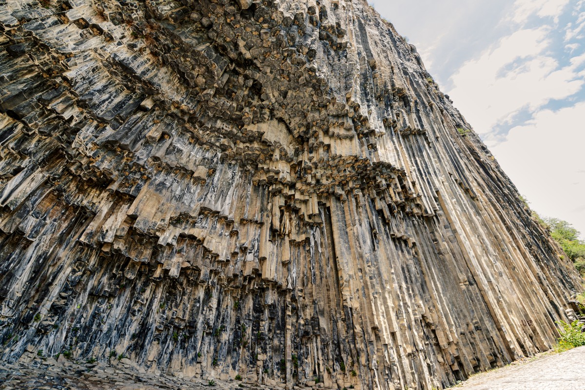 При желании можно спуститься на внедорожнике в ущелье, где вас ждет природное чудо — гигантские базальтовые столбы вулканического происхождения с поэтичным названием Симфония камней.