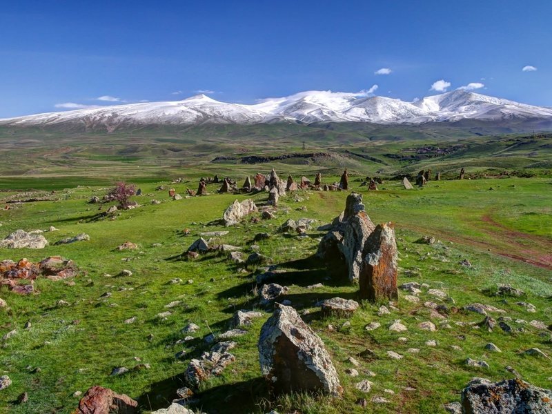 Караундж (Зорац Карер) — древнейшая обсерватория, напоминающая Стоунхендж. Этот доисторический памятник расположен в 200 км от Еревана, у города Сисиан, и состоит из сотен вертикально поставленных камней со сквозными отверстиями. История этого места, как и природные декорации вокруг, восхищают.