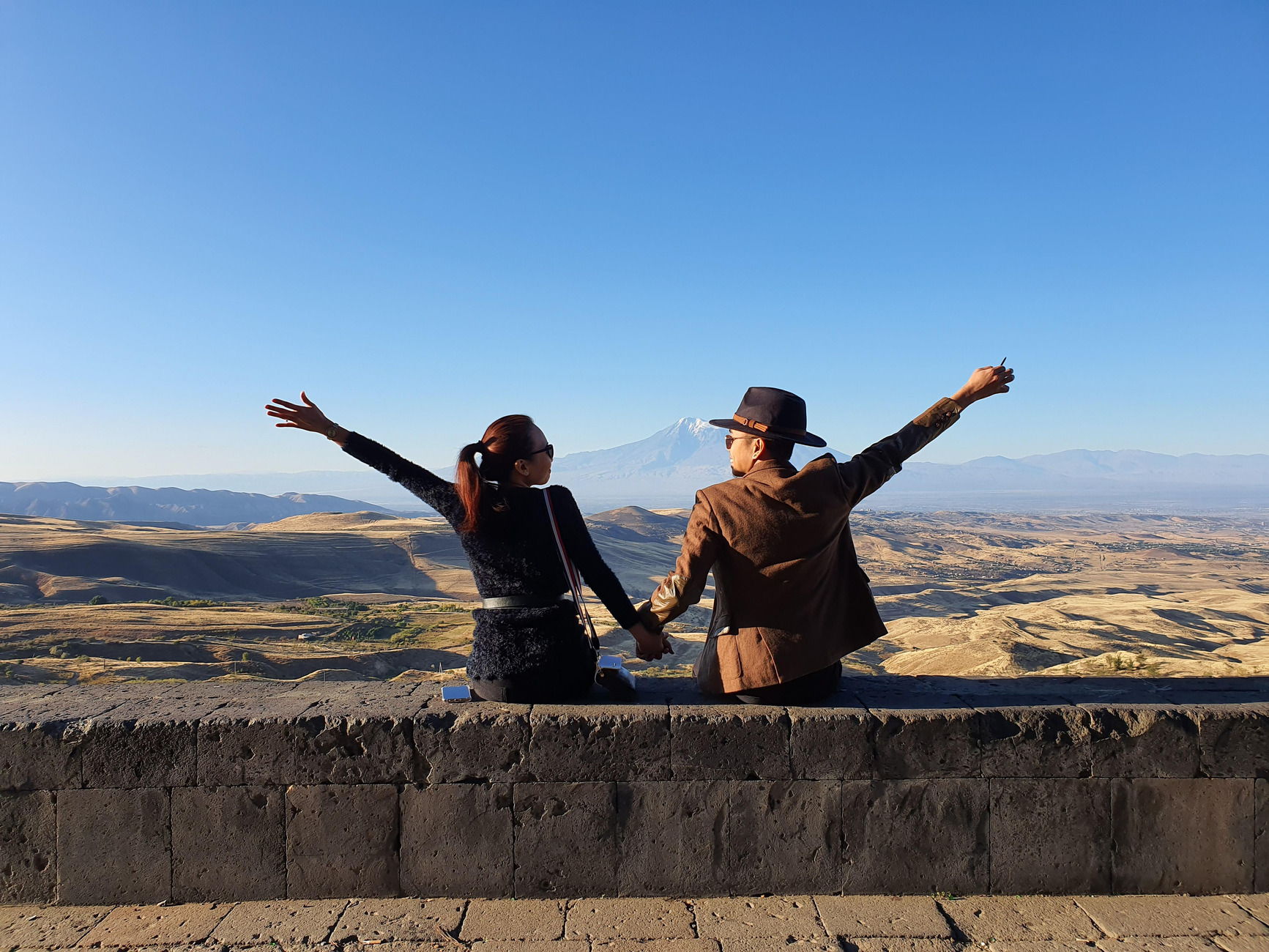 Первая остановка в маршруте — Арка Егише Чаренца, памятник-смотровая площадка с видом на Библейскую гору Арарат.