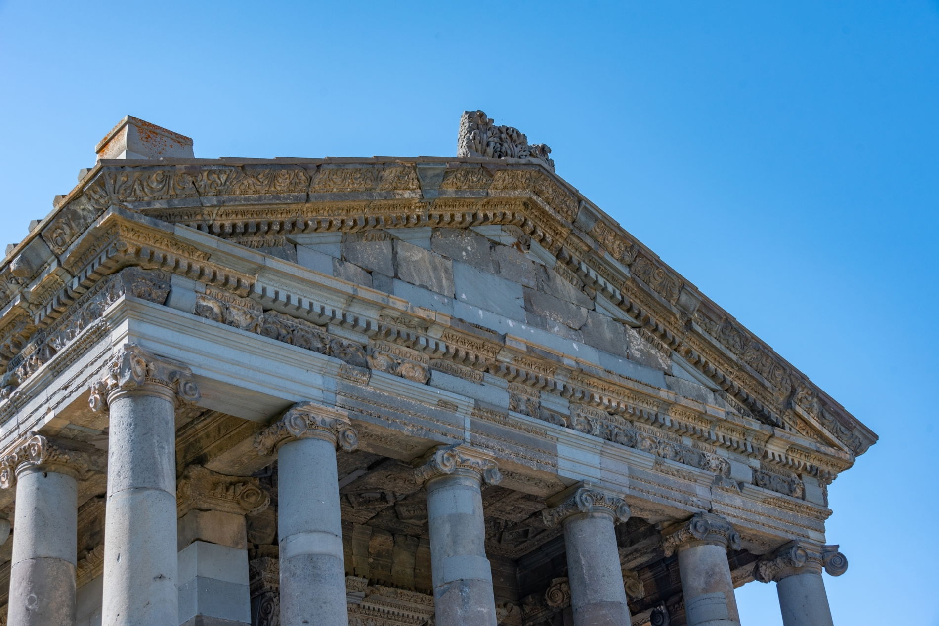 Первая остановка — храм Гарни (77 г. н.э.) — единственный языческий храм на всей постсоветской территории. Храм стоит на высоком плато с видом на невероятно красивое ущелье реки Азат. Римская баня с мозаикой из 30 000 кусков натуральных камней, а также руины королевского дворца, перенесут вас в 3-й век н.э.
