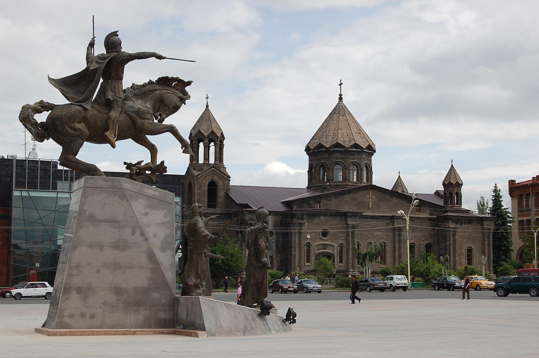 Давид Сасунский — герой средневекового национального эпоса встречает гостей Еревана на Привокзальной площади. Медная скульптура возвышается на цельной базальтовой глыбе. Архитектор памятника мастерски применил приём «движения в камне». С одного ракурса вы видите коня со всадником, вставшего на дыбы. Пройдя чуть дальше, замечаете, что конь вытянулся в полете. Суть монумента – в восхвалении доблести и бесстрашия армянского народа.