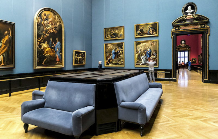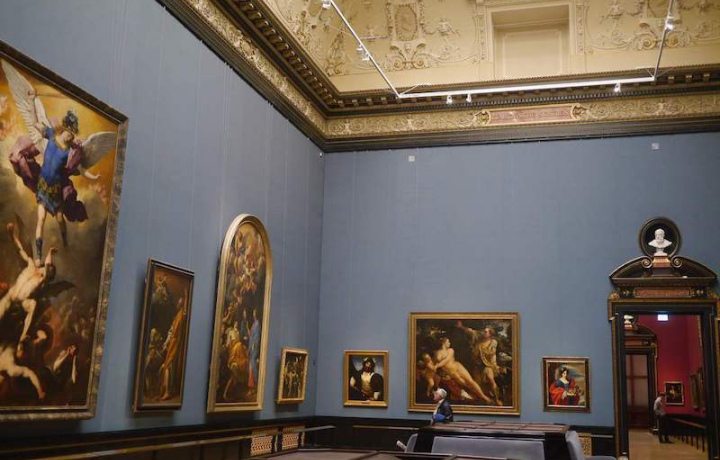 Если вы устанете ходить из зала в зал, мы присядем на удобный диванчик и продолжим любоваться шедеврами живописи или сделаем кофейную паузу под центральным куполом музея.
