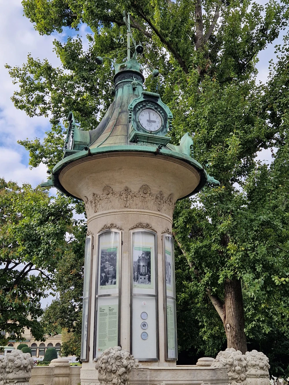 Улица Ринг прокладывалась в 19 веке и должна была сделать Вену жемчужиной Европы. А значит, городской мебели на ней стоило выглядеть изящной и добротной. И вот городские власти озаботились скамейками, фонарями, гидрантами, туалетами и часами. Их-то мы и будем изучать.