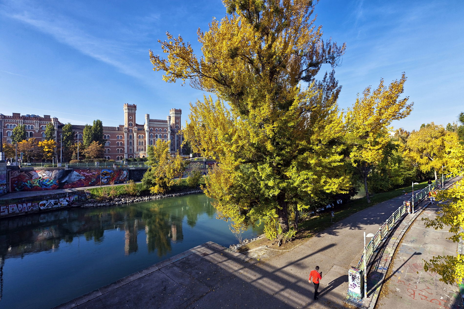 От станции «Райхсбрюке» вы любуетесь «современной Веной»: возвышаются Дунайская башня, башня Миллениум и изящные контуры городских кварталов. Через шлюзы Нусдорф теплоход входит в Дунайский канал — здесь перед вами оживает «историческая Вена» с уникальными зданиями, включая теплоэлектростанцию Хундертвассера в Шпиттелау, казармы Россау и знаменитый Рингтурм. Завершение маршрута — в самом сердце столицы, на площади Швеценплац.