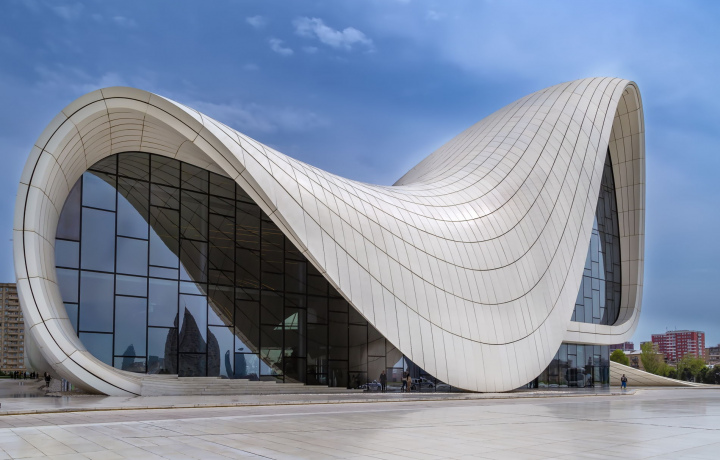 • Внешний осмотр Центра Гейдара Алиева. Культурный центр Гейдара Алиева — настоящая жемчужина Баку. Представляет собой современное комплексное сооружение, включающее в себя аудиториум, музей и выставочные залы.