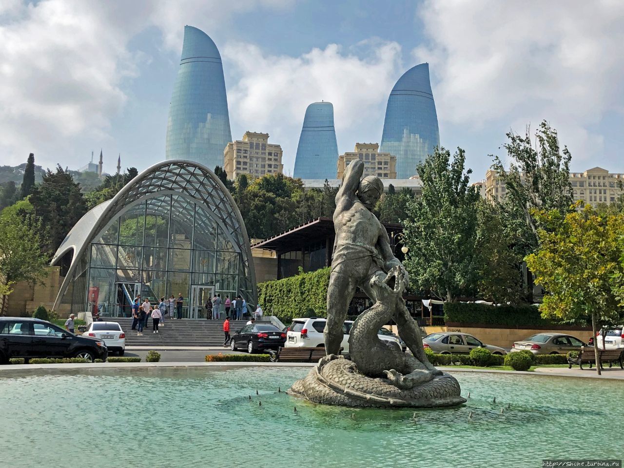 Остановимся у знаменитого здания Захи Хадид — символа современного Баку и одного из самых фотографируемых мест города.