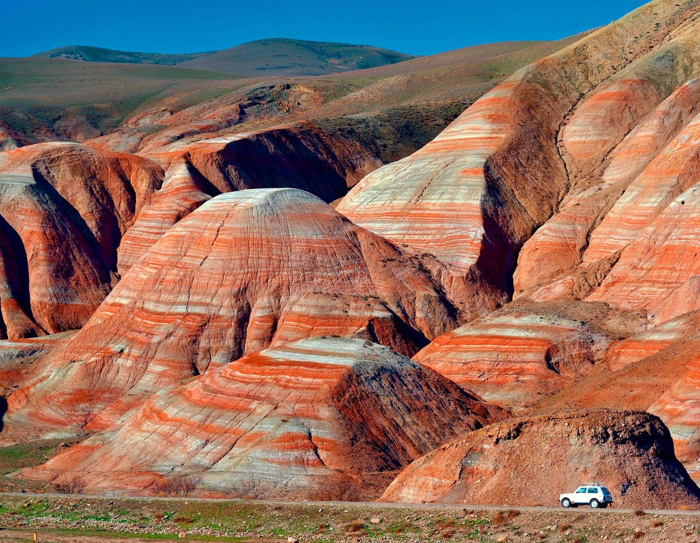 Мы посетим Горящую гору Янардаг, розовое солёное озеро Масазыргёль, удивительные Радужные горы и священную гору Бешбармаг, где можно загадать желание. А завершит день дегустация чёрной икры и чаепитие с травами у подножия горы.