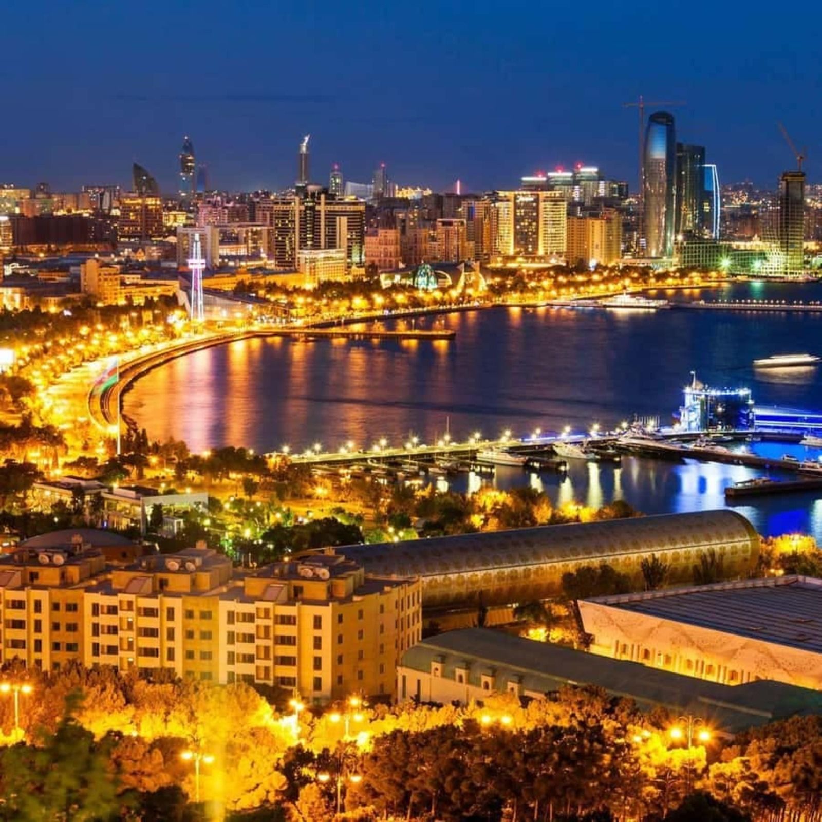 • 🔥 Пламенные башни (Flame Towers) — символ современного Баку, освещающий город языками огня.