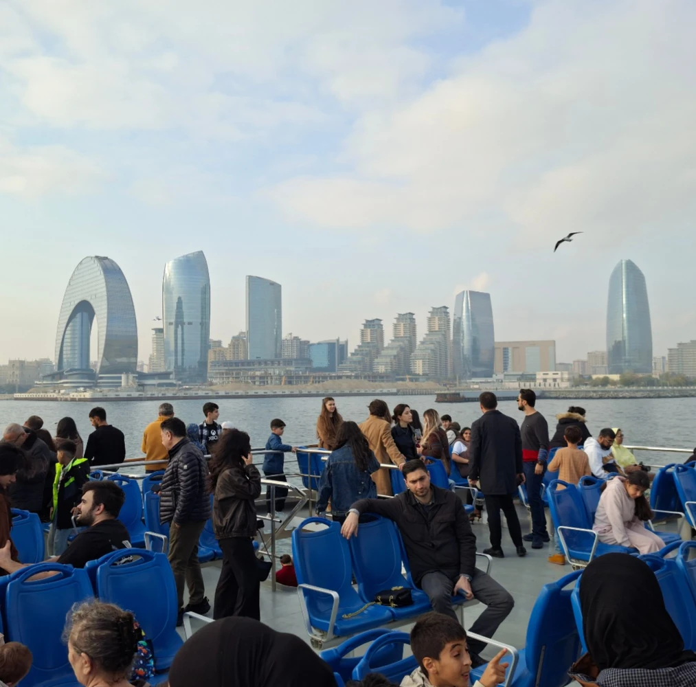 Мы будем двигаться вдоль береговой линии. Вы полюбуетесь современной набережной Баку с воды и рассмотрите знаменитые Пламенные башни.