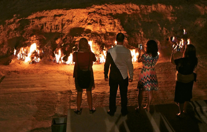 Дальше — Янырдаг, Огненная гора, где земля действительно горит. Это нужно видеть своими глазами — ни одно фото не передаёт ощущения живого огня, который выходит прямо из-под земли.