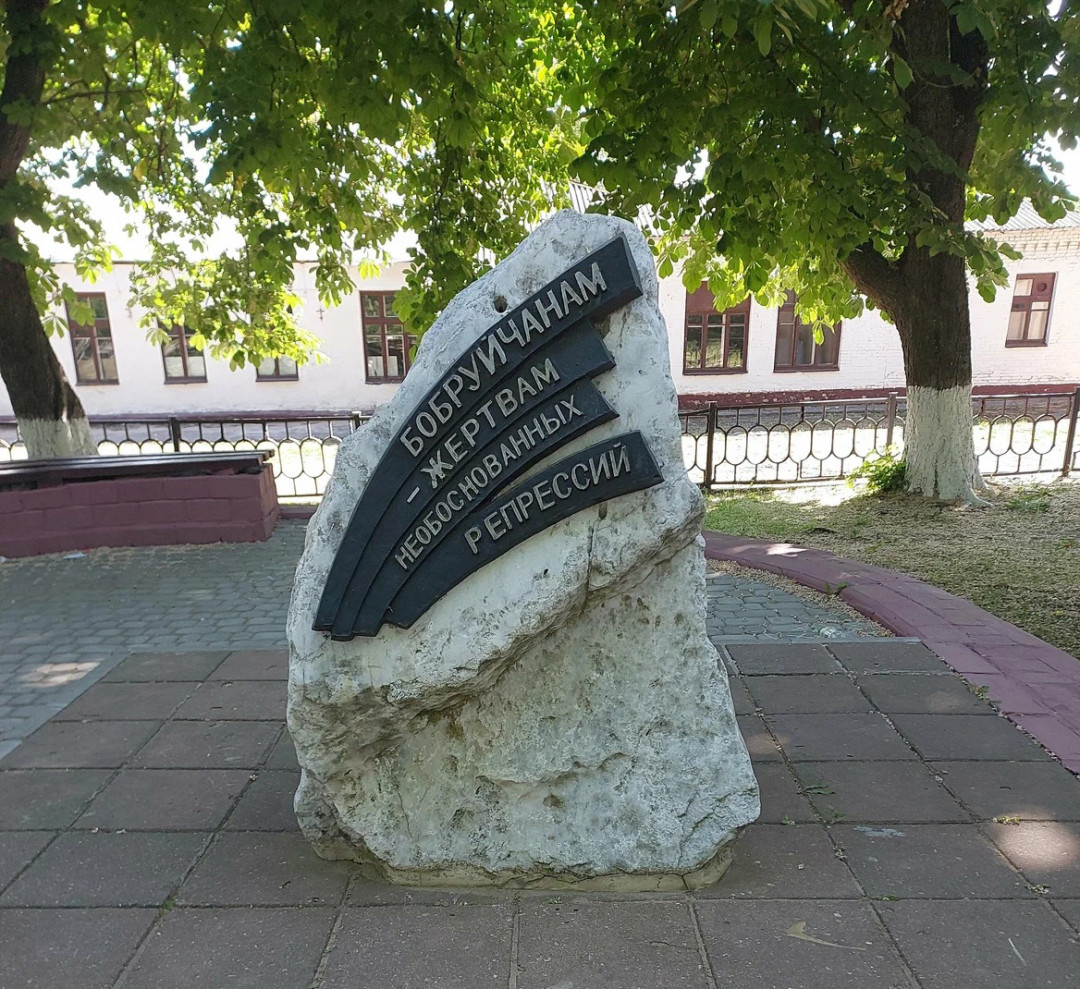 Памятник жертвам необоснованных репрессий — часть мемориала на площади Победы. Он пополнил композицию в 1998 году. На постаменте установили необработанную глыбу из белого гранита высотой 1,2 м. На табличке было выбито посвящение бобруйчанам, ставшим жертвами политических репрессий. Позднее по решению местных властей слово «политических» заменили на «необоснованных».