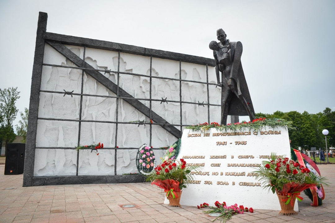 Во время Великой Отечественной войны фашистские оккупанты организовали в Бобруйской крепости концлагерь, где погибли десятки тысяч советских военнопленных и мирных жителей. В 2014 году на территории крепости был открыт мемориальный комплекс «Жертвам фашизма». Авторы памятника Леонид и Галина Левины точно и пронзительно показали страшную трагедию, которая творилась в Бобруйске в первый год войны. Центр композиции — огромный куб из белого бетона, затянутый колючей проволокой. На его поверхности — силуэты узников концлагеря. В него «врезается» символическая железнодорожная платформа — на таких в лютый мороз фашисты раздетыми возили пленных. На платформе — красноармеец, укрывающий своей шинелью замерзающего человека. Надпись на плите гласит: «Всем не вернувшимся с войны 1941–1945». Ниже выбиты стихотворные строки в память о погибших.