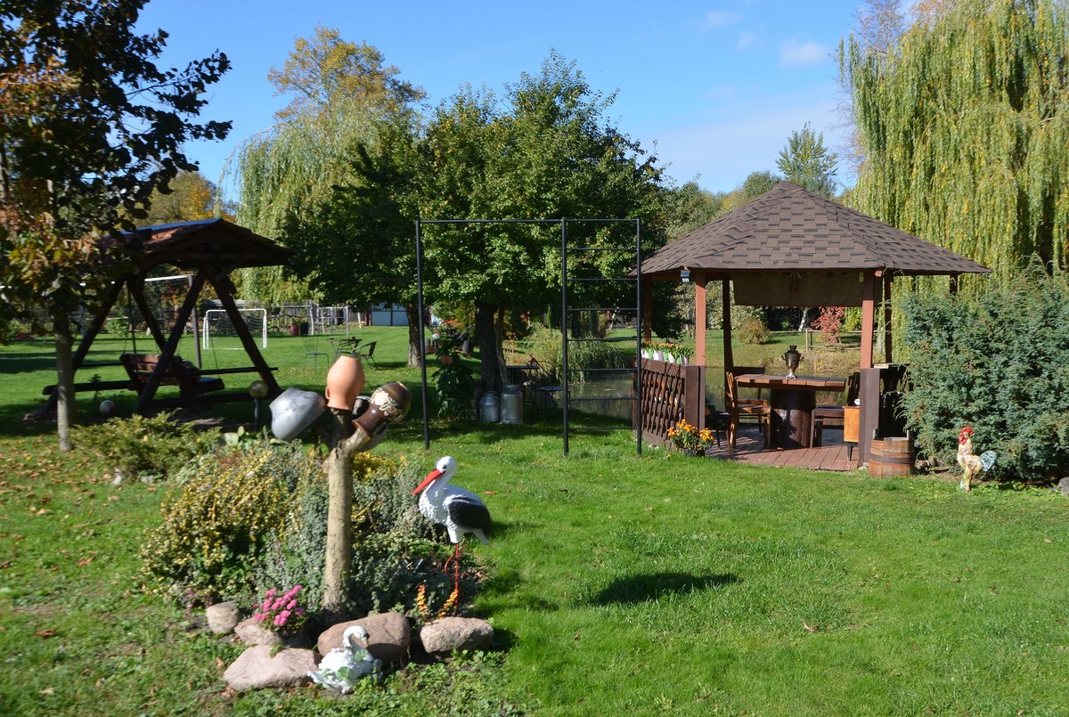 Пообедаем в агроусадьбе «Рада». Вы попробуете блюда традиционной кухни: литвинскую бабку, селянские колбаски, солёные огурцы и капусту, сало с мясной прослойкой, переполомники, а также ароматный чай из трав или компот из сушёных яблок.