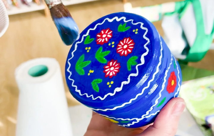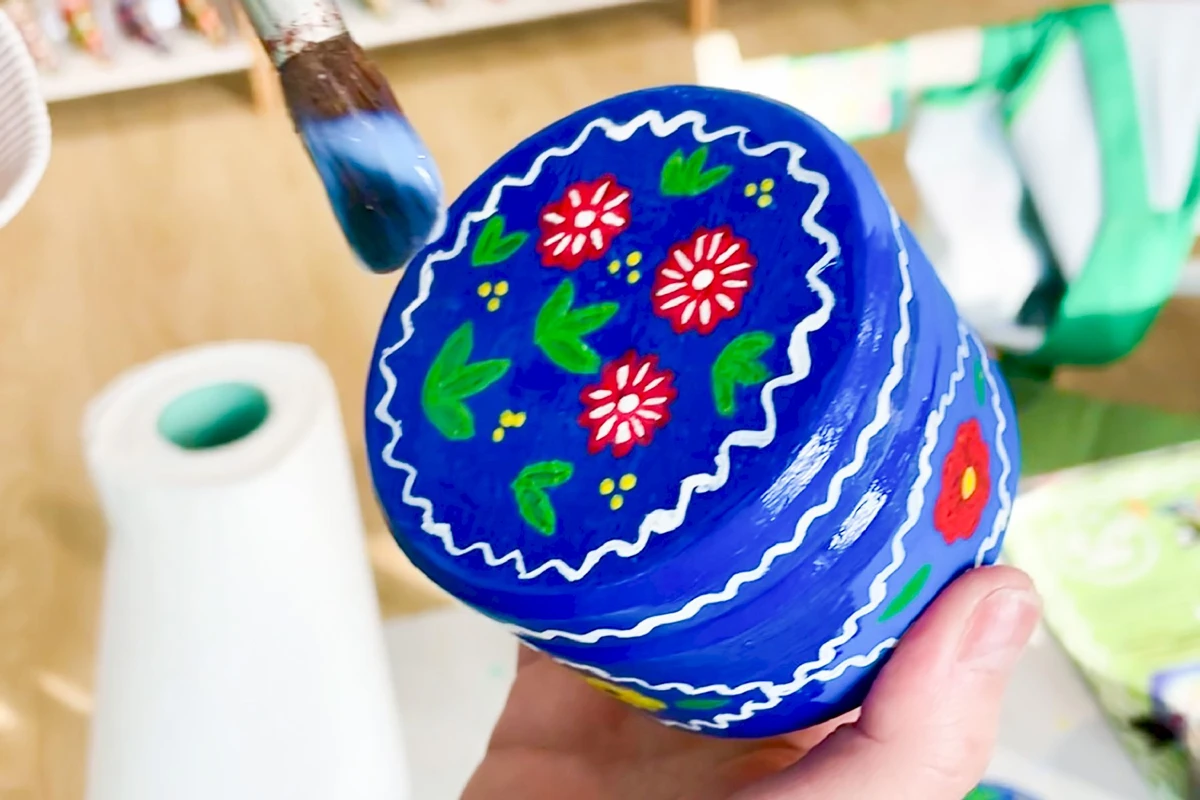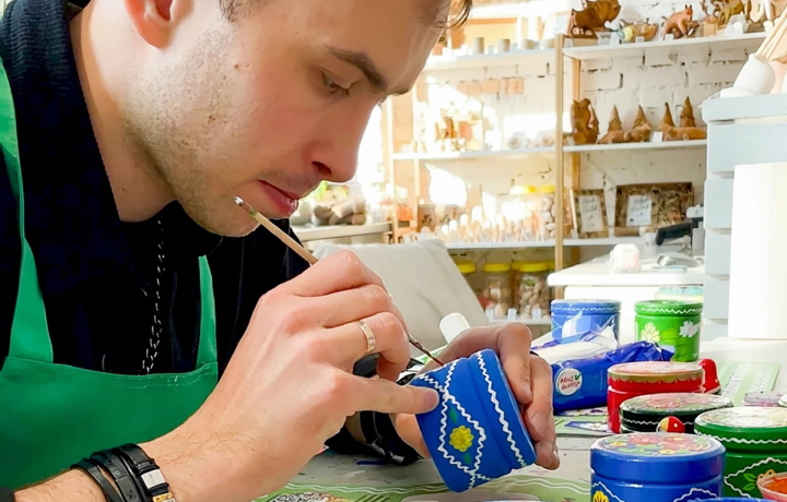 После завершения росписи мы закрепим изделие защитным слоем и аккуратно упакуем, чтобы вам удобно было унести его с собой.