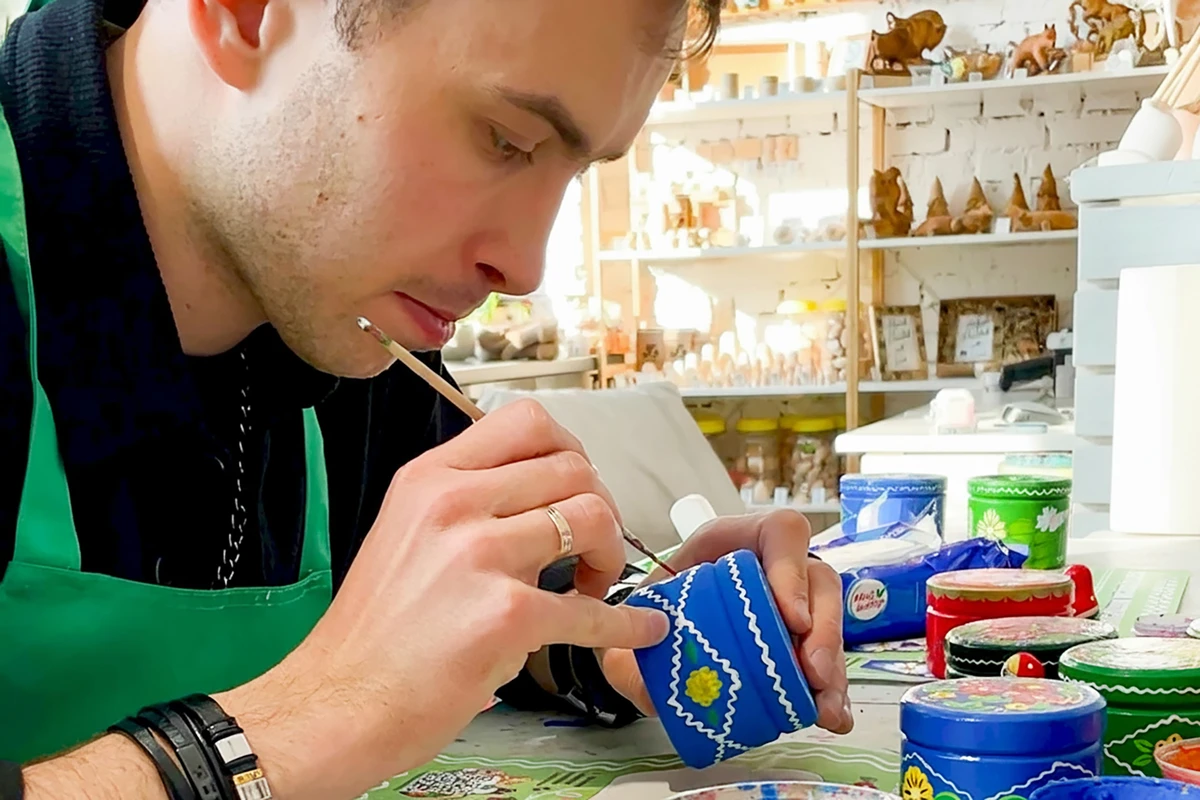 Основная часть мастер-класса — роспись деревянной шкатулки. Вы будете работать с формой предмета, выстраивать композицию и постепенно наполнять её орнаментом. Этот процесс не про скорость, а про внимание: важно не придумать, а почувствовать, как узор складывается.