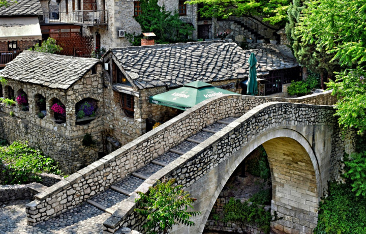 Мозаичный Мостар — главный город Герцеговины с каменным мостом 16 века.