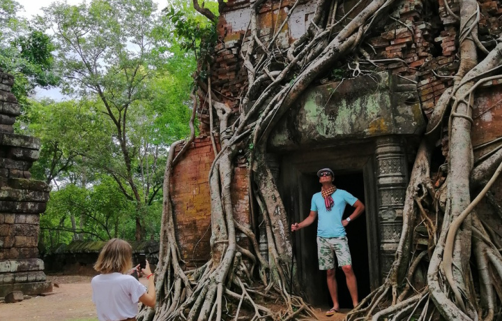 Храм Бенг Мелеа. Он создан в архитектурном стиле комплекса Ангкор-Ват. Строение когда-то служило усыпальницей для правителей древней Камбоджи. Его давно оплели джунгли, и корни деревьев проникли в священные руины.