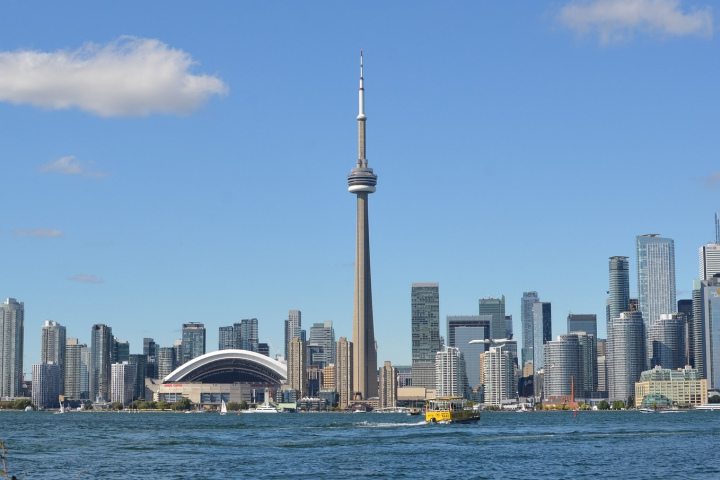Телевизионная башня и символ Торонто Си-Эн Тауэр (CN Tower) официально открыта в 1976 году. Название сооружения расшифровывается как Canada’s National. Высота башни — 553,3 м. На отметке 351 м находится круглая закрытая смотровая площадка «Скай-под» диаметром 36,5 м. Её пол из закалённого стекла толщиной 6,35 см способен выдержать вес 38 тонн.