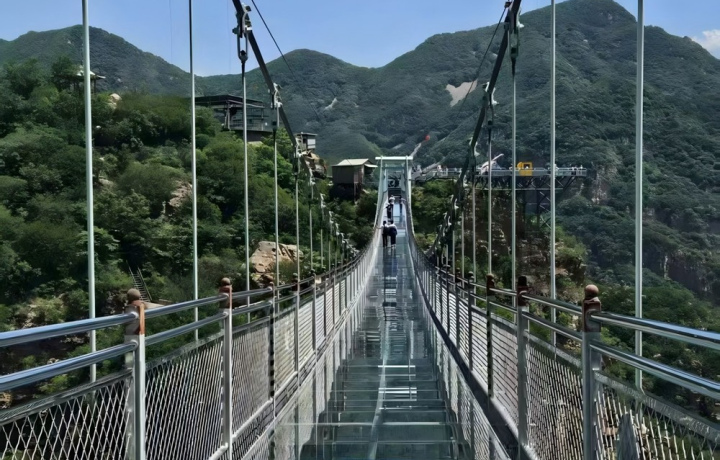 - Стеклянный мост в горах Тяньюньшань — на высоте около 1000 метров над уровнем моря, длиной более 200 метров. Кажется, будто идёшь по воздуху!