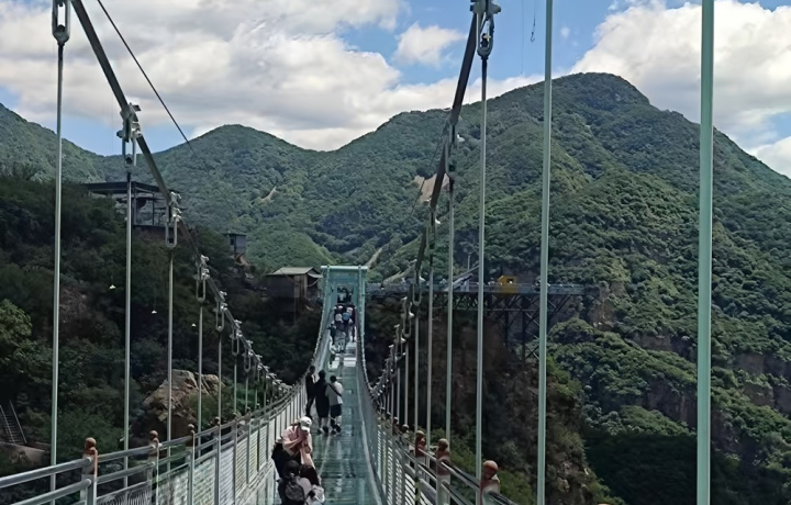 11:30–14:30 — прогулка по стеклянной дорожке (160 м на высоте 1149 м) и по подвесному стеклянному мосту. Смотровые площадки и время для фото. Спуск с горы, осмотр древней резиденции императора Чжэньлу, храмового комплекса и природных ландшафтов