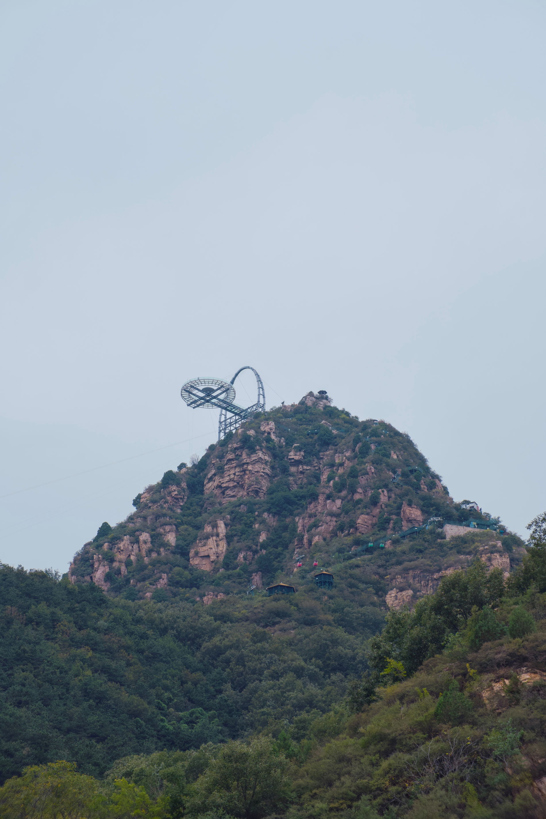Главная точка маршрута — стеклянная смотровая площадка НЛО, нависающая над скалой на 32,8 метра. Её конструкция сделана из космических материалов: титана, стали, сверхпрочного троса и стекла. Площадка площадью 415 м² признана самой большой в мире среди подобных сооружений и даже превосходит по длине знаменитый стеклянный мост в Гранд-Каньоне.