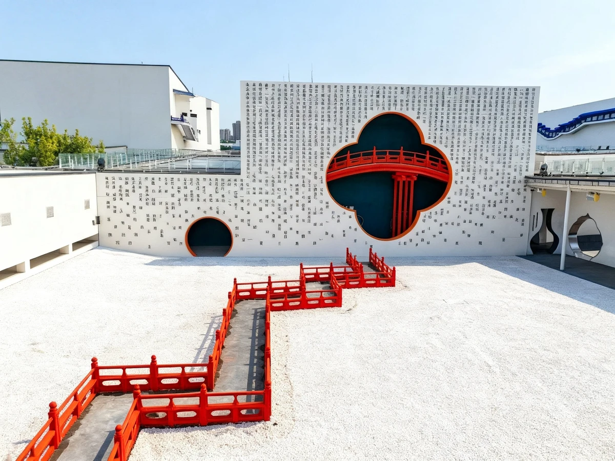 17:30–18:30 — лабиринт из 108 пространств. Сразу за монументальными 16 воротами начинается прогулка по тематическим закоулкам. Белые стены, резные окна, красные стулья, — особая эстетика здесь служит погружению в текст романа
