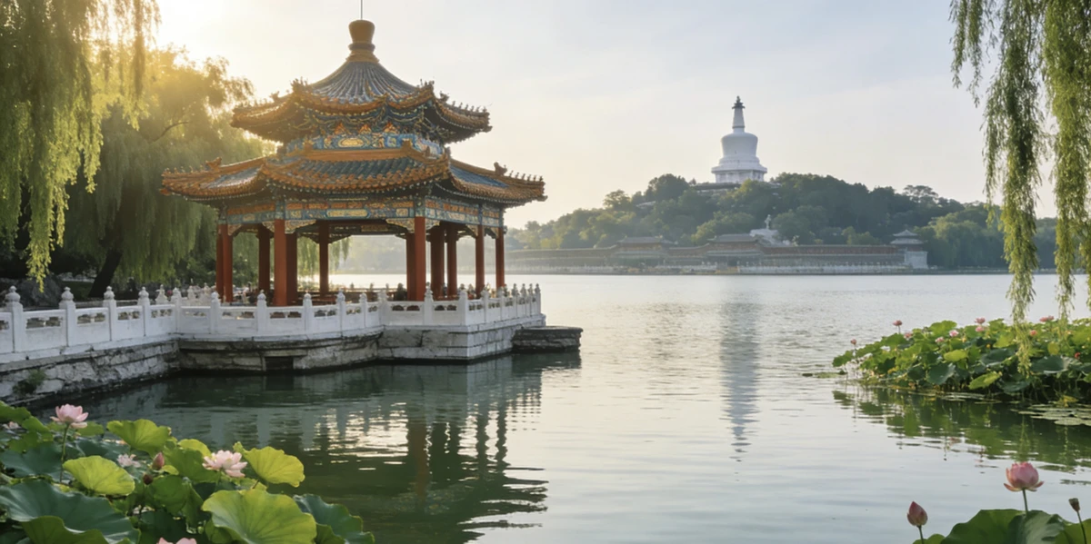 14:30 — Императорский парк Бэйхай, который пережил пять династий и до сих пор выглядит как декорация к сказке. В центре озера — остров Цюнхуа с белой тибетской пагодой, на берегах — павильоны, стена девяти драконов и беседка над водой. Вы узнаете, каким видели идеальный мир китайские правители.