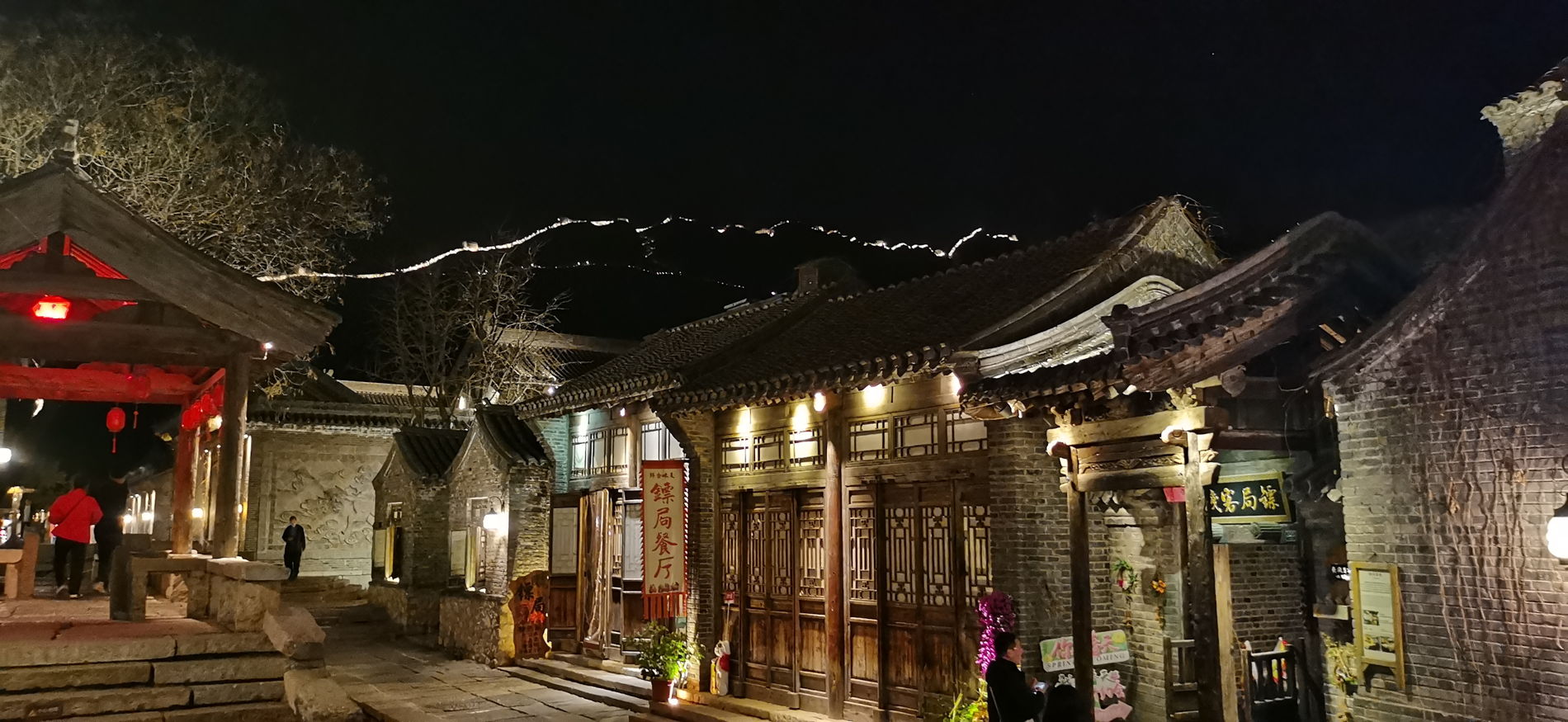 Фотограф поможет поймать идеальный силуэт на фоне заходящего солнца. Главное преимущество — к вечеру основные толпы туристов рассеиваются, и у вас будет шанс сделать атмосферные снимки без лишних людей. 3. Ночные огни Губэя: Великая стена в огнях Поселок Губэй расположен у подножия участка Великой стены Сыматай. После заката здесь зажигается иллюминация: огни отражаются в каналах, а подсвеченная стена извивается по горным хребтам. Это зрелище, которое нельзя увидеть днем.