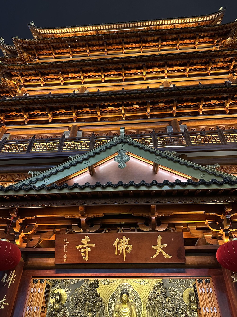 Далее вы отправитесь в эпицентр городской жизни. Ночью улица Бэйцзин-лу наполняется энергией и светом. Но главное чудо ждёт вас рядом: за стенами находится храм Большого Будды. Вы увидите, как его древние силуэты и мягкая подсветка создают почти нереальную картину на фоне неоновых вывесок.