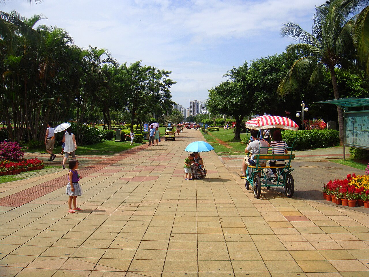 Подняться на гору Лухуйтоу можно пешком или на электромобиле. Лучшее время для посещения парка — вечер и ночь, когда на небоскрёбах соседнего острова Феникс включается разноцветная подсветка.