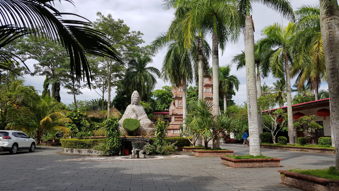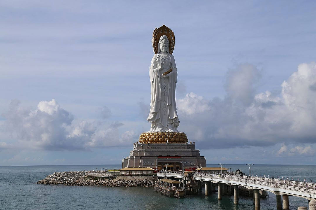 Главное украшение буддийского храмового комплекса Наньшань — статуя бодхисаттвы Гуань Инь, одной из самых почитаемых богинь в буддизме. Монумент возвышается на маленьком насыпном острове, который соединяет с сушей узкая аллея, проложенная по дамбе. Высота статуи — 108 м. Грандиозное сооружение было открыто при личном присутствии Его Святейшества Далай Ламы и буддийских монахов из Тайваня. Богиня изображена с тремя ликами, один из них обращён к острову, а два других — к морю. Под статуей находится храм с коллекцией её миниатюрных копий.