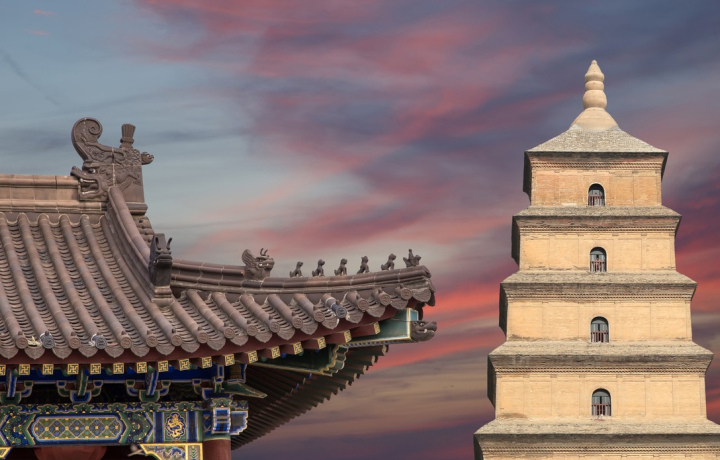 Большая пагода диких гусей была построена в 652 году в качестве хранилища ценных буддийских манускриптов, привезённых из Индии странствующим монахом-философом Сюаньцзаном. Первоначальный проект включал пять этажей. Впоследствии к пагоде пристроили ещё пять ярусов, но три из них были впоследствии разрушены. Высота сооружения в нынешнем виде — 64 метра.