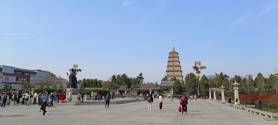 На Северной площади Дайян пагоды установлен бронзовый памятник Сюаньдзану (Xuanzang), китайскому монаху-буддисту, философу и учёному, жившему во времена императорской династии Тан в VII веке. Среди современников Сюаньдзан был известен как переводчик буддийских текстов с санскрита, который провёл семнадцать лет в странствиях по Индии и привёз в Китай более 650 ценных манускриптов. Многие из них сохраняются в Большой и Малой пагодах диких гусей.