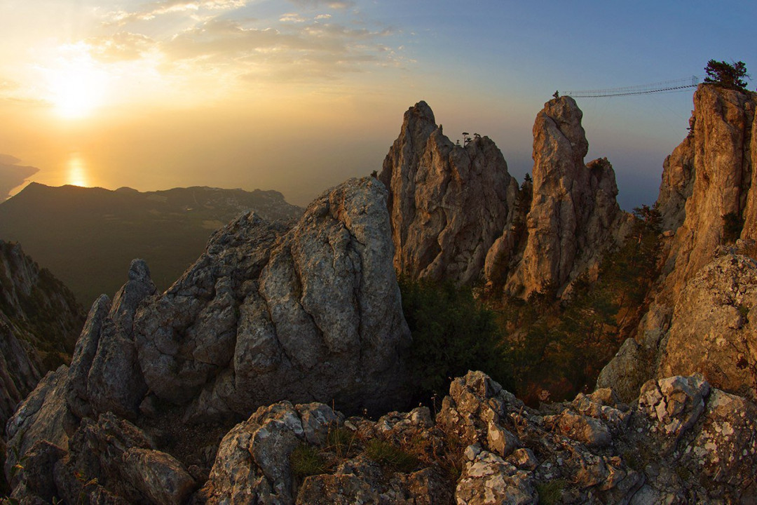 Гора Ай-Петри — часть Ай-Петринской яйлы и Ялтинского горно-лесного заповедника. Она возвышается на Алупкой, силуэт её скалистых пиков, окрашенных в разные оттенки, — визитная карточка Южного берега Крыма. Высота самого крупного зубца на гребне — 1234 м. На плато Ай-Петри туристов поднимает канатная дорога. Прогулка по цветущим полянам, лиственному и сосновому лесу доставит истинное удовольствие ценителям дикой природы. На скалистом склоне, чудом зацепившись за камни корнями, прямо над обрывом растут сосны, их называют «Пьяной рощей». В программу экскурсии входит посещение карстовых пещер, метеостанции, Ай-Петринского меридиана. Рядом с туристическим маршрутом работают кафе и рестораны крымско-татарской кухни. С природной обзорной площадки открывается панорама моря, побережья, Крымских гор.