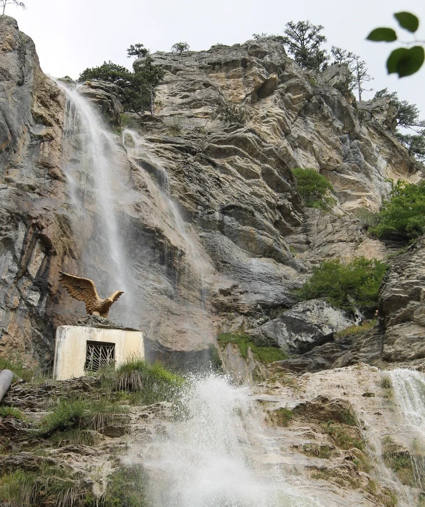 Водопад Учан-Су на склоне горы Ай-Петри — охраняемый природный объект, входящий в состав Ялтинского горно-лесного заповедника. Водный поток срывается с высоты 98,5 м и падает по уступам слоистых скал, образуя у подножия небольшую лагуну. Наиболее впечатляюще каскад выглядит весной и в период сильных дождей. Зимой струи замерзают, оплетая камни ледяным кружевом. Под первым каскадом на уступе стоит статуя орла с расправленным крыльями.