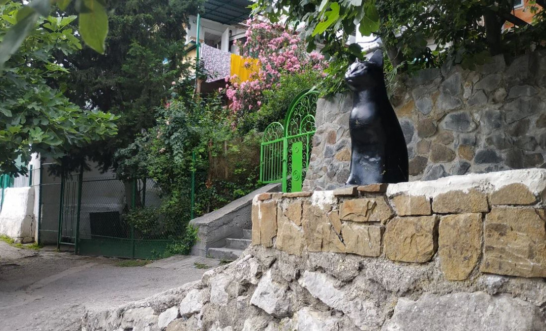 Коты в Гурзуфе стали неотъемлемой частью городского антуража. Они греются на парковых лужайках, гуляют по улицам, их изображения украшают стены домов. Скульптура «Кот» появилась на улице Чехова в мае 2013 года. Памятник, выполненный в натуральную величину, стал ещё одной маленькой достопримечательностью посёлка. Автор — белорусский художник Олег Илларионов, который отдыхал в Гурзуфе, был покорён атмосферой курорта и решил сделать подарок его жителям. Чёрный кот в ожидании вглядывается в море. Местные жители прозвали персонаж Пенелопой.